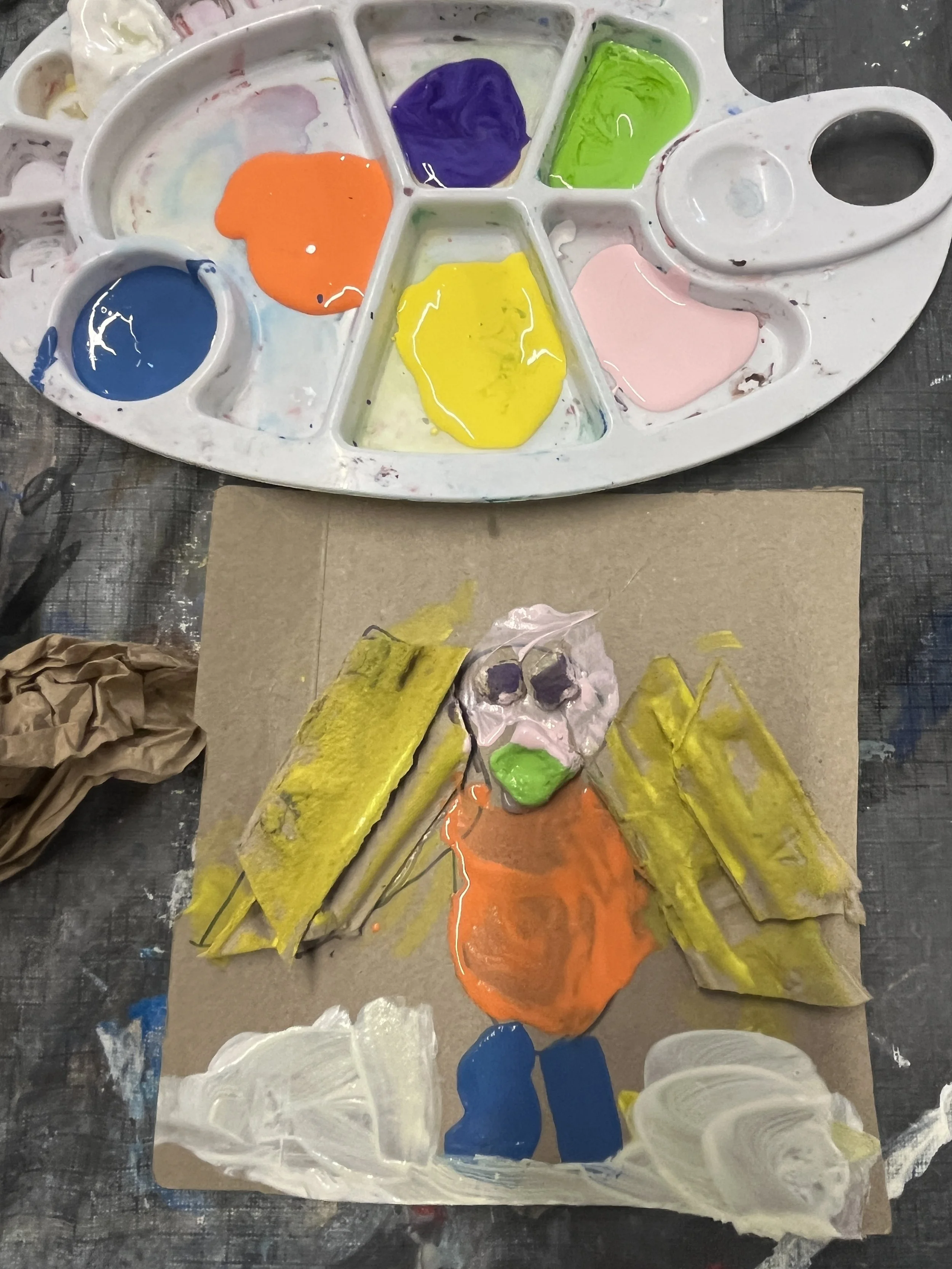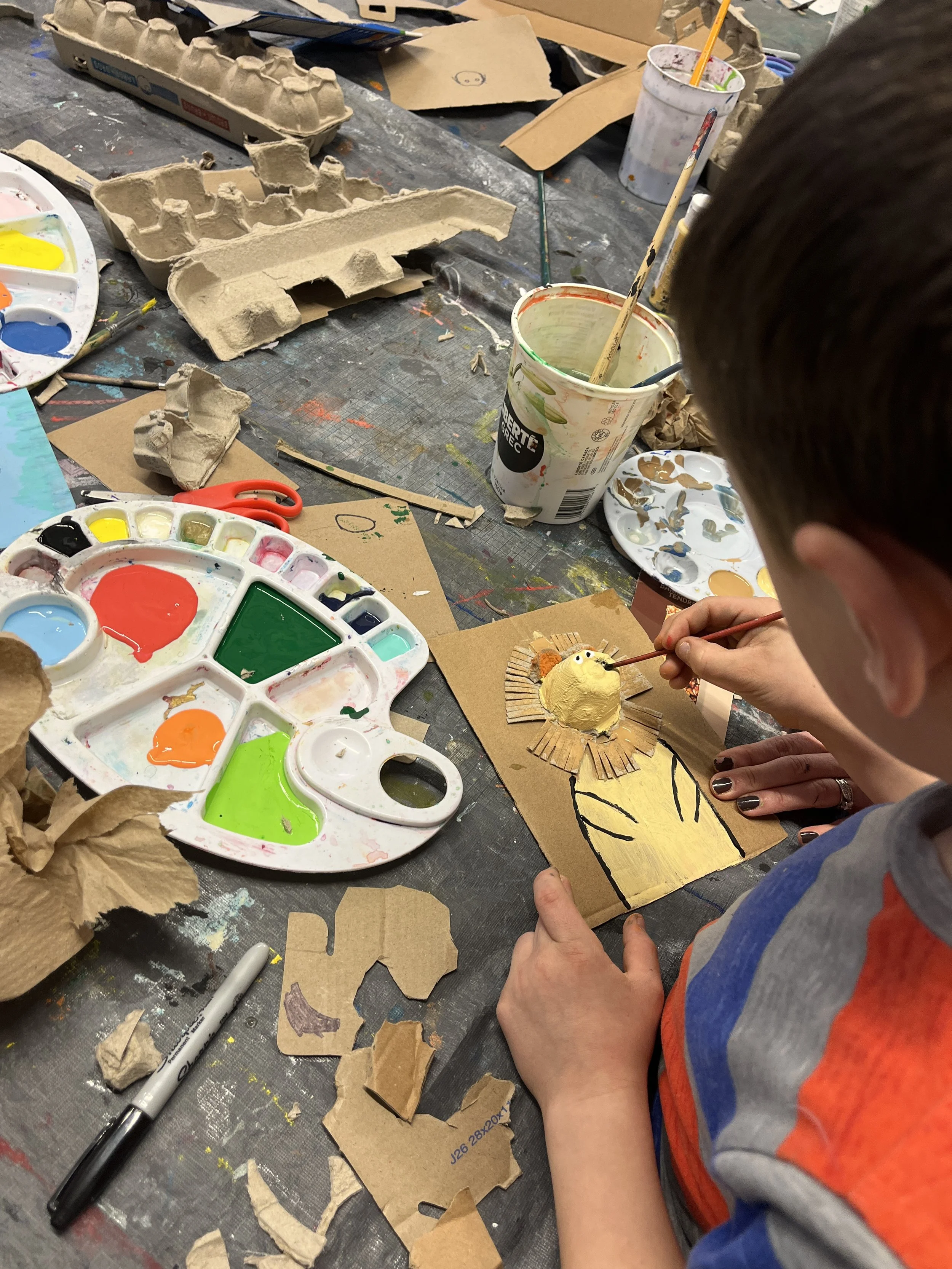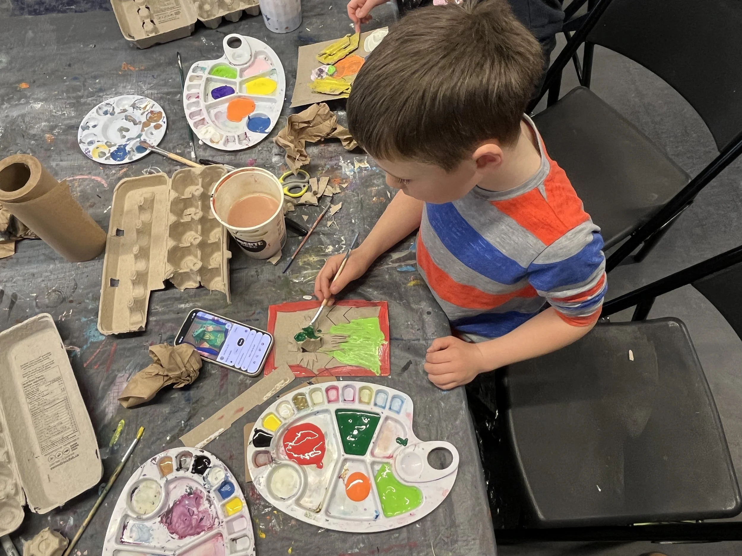 It was a joyful morning of cutting, painting, gluing, and experimenting as the kids transformed simple materials into imaginative artworks. I even went home with a few new pieces of art for my fridge.