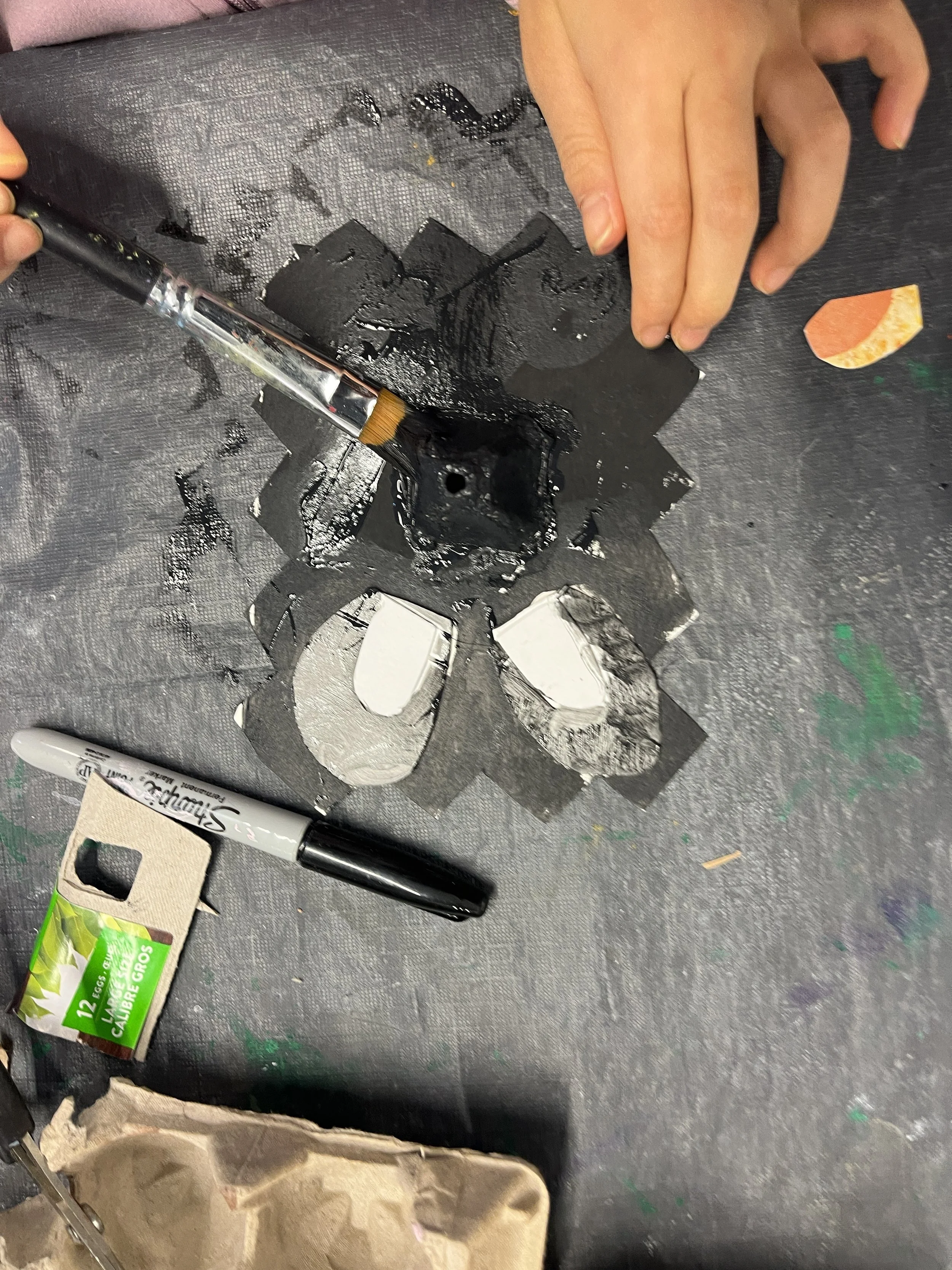 This month at Kid's Creativity Club, young artists explored painting, sculpture, and mixed media through two hands-on projects: Egg Carton Animal Portraits and Salt Snowflakes. Using recycled egg cartons, we created playful 3D animal portraits and experimented with texture and watercolour to make shimmering salt snowflakes.